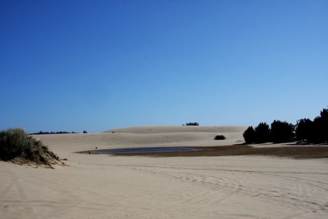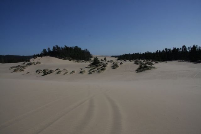 黃沙漫漫,一片的荒漠,有時我加速太慢,衝不上去,很容易陷在沙堆裡,