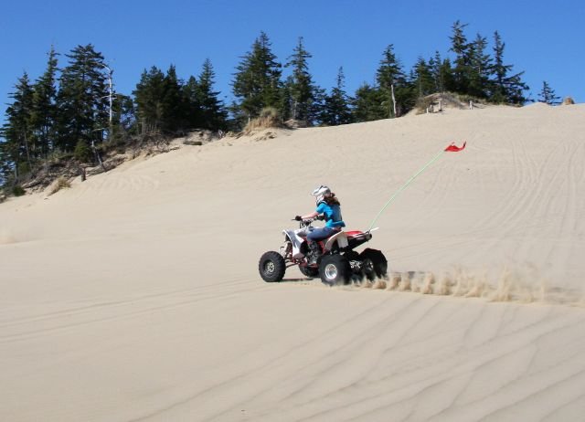 騎ATV 最難,也最有感覺的是,加速騎上那陡上的沙山丘上。