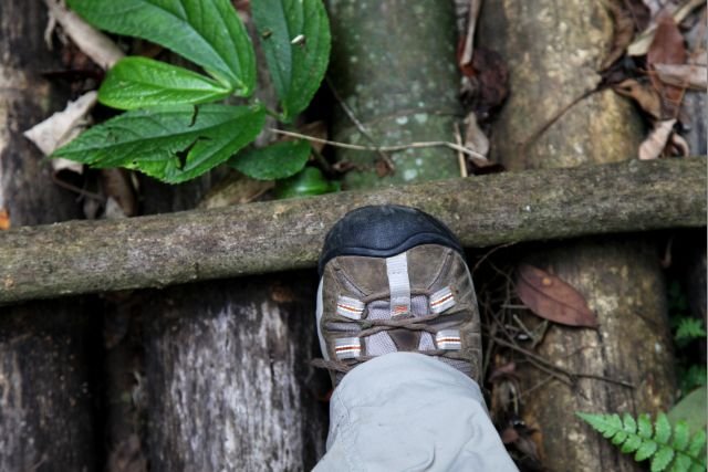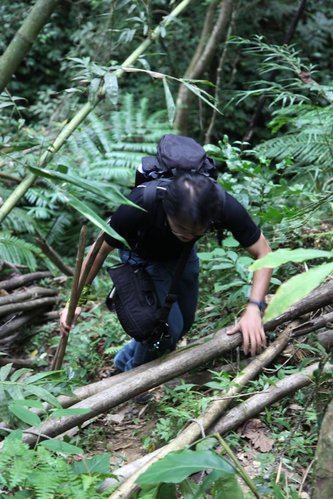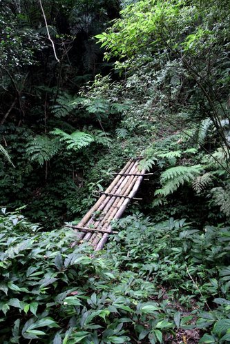 要過一個竹橋,這是伙伴們自己建造的竹橋。這裡是一個很少人知的古道,也是伙伴們的祕密花園森林,路跡也不明顯。
