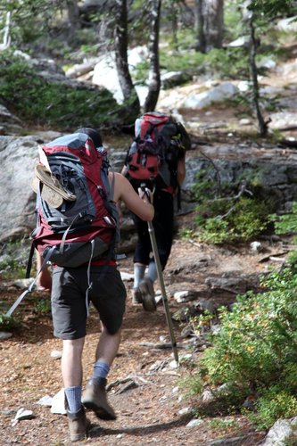 進入森林,來到叉路,今天是要去探阿爾卑斯湖Alpine Lake 7823f t ( 2385m ),