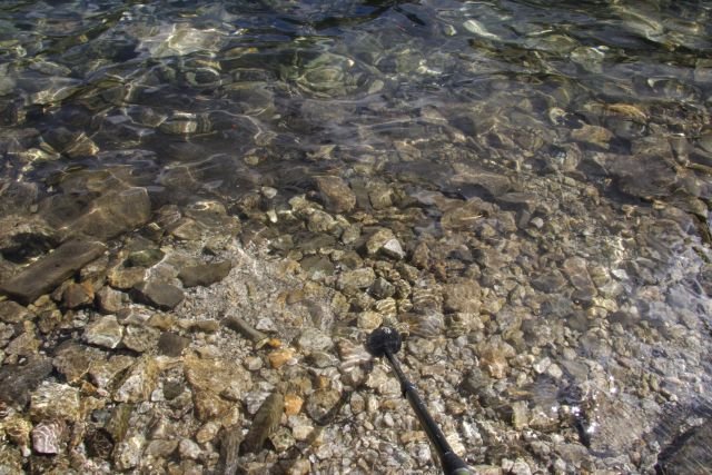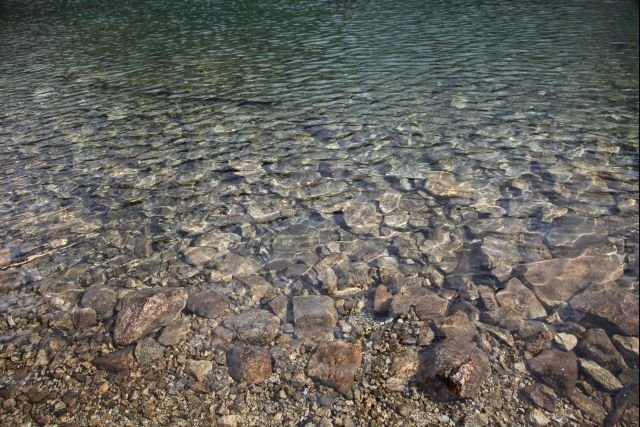 湖面清澈如鏡,湖水因風的吹拂而產生的波痕,很美,也很奇妙。