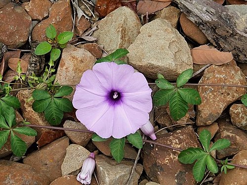 而一旁牽牛花,也不甘示弱的一展花顏。