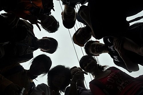 伙伴們一行九人,圍個圈圈,真是愛耍寶的一群,也象徵著人間友情久久長長。人,一定要保有那稚子之心,才能享受生命之美,因為只有稚子之心,才會有好奇探索的慾望。不是嗎?