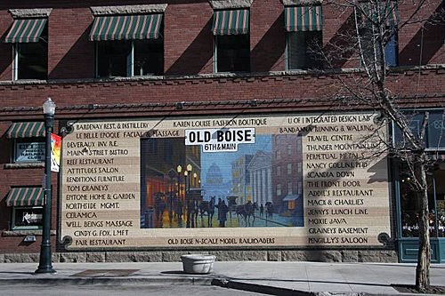 我走到 Main Street 和 6 th Street 十字路,看見了一棟比較特別的建築物,牆上掛著一幅 Old Boise 的介紹。現在已變成很有特色古典的餐廳了。
