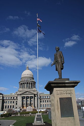 在州議會大廈前有一尊林肯 Lincoln 的雕像,在雕像下的石碑刻有林肯1863年11月19日的演講。看到林肯 Lincoln的雕像,就會想到他是美國第 16 任的總統,且也會想到美國歷史上最大的一場美國內戰,又稱為「南北戰爭」。而這場「南北戰爭」是從1861年到1865年,經過了整整長達4年之久,這場戰爭的起因是因為美國南部十一州是以亞伯拉罕.林肯 (Abraham Lincoln) 就任總統為由而陸續退出聯邦,而另一成立是以傑斐遜.戴維斯 (Jefferson Davis) 為總統的政府,並驅逐駐紮南方的聯邦軍,而林肯 Lincoln 下令攻打「叛亂」州。最後林肯 Lincoln 廢除了奴隸制度,擊敗了南方分離勢力,維護了國家的統一。而南北戰爭內戰結束之後不久,林肯於 1865 年 4 月14 日星期五的晚上,在劇院遇刺身亡。他是美國歷史上第一個遭到刺殺的總統。