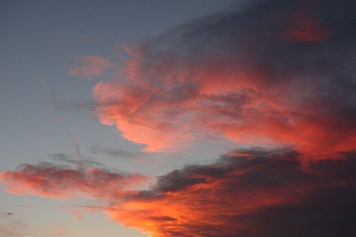 天色愈來愈晚了,夕陽西下,讓 Boise 的天空彩霞滿天,我想起之前在台灣時,我剛從德國回來不到一個月,去年 2008 年 9 月22日哈格比颱風將來臨的天空,跟現在是一樣的美麗。Amy 曾經告訴過我:「小毛,不管你在天涯海角的那個地方,我們看的天空是一樣的。」