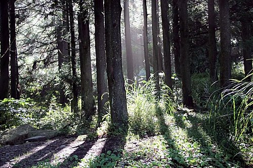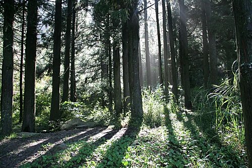 林道依然跟多年前一樣,沒有變,一道陽光從林間穿射而來,更顯得林道的幽靜,而從思源埡口進入的710林道約幾百公尺處,就看見四位成大的學生已完成了南湖之行回程了。