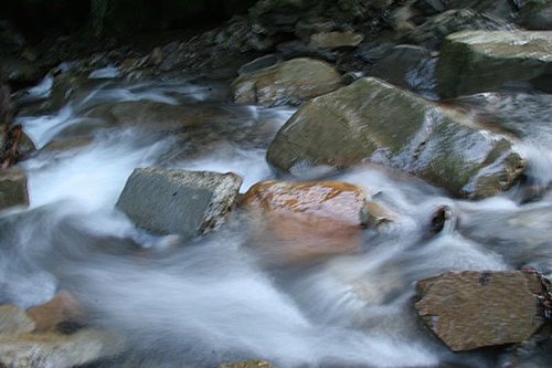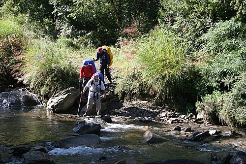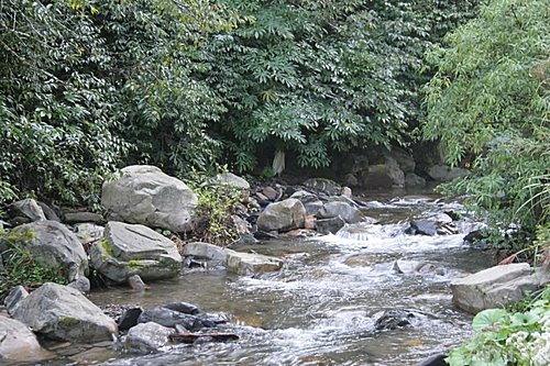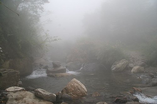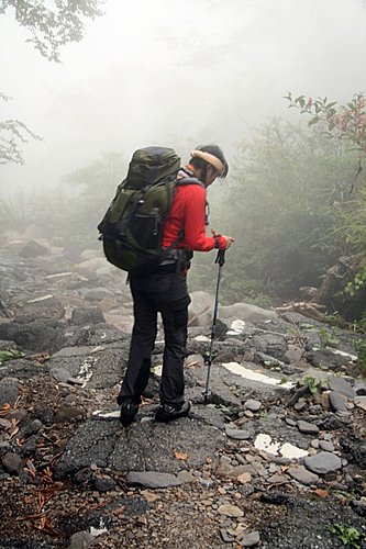 我們開始要涉溪而過,過溪不久約幾百公尺處,就有一處山難紀念碑,是一位女學生因大雨回撤,在旁邊溪谷涉溪時被大水沖走而溺斃。看到這個紀念碑,也讓我想起好久好久之前的珍珍,因為爬南湖中央尖,也在中央尖溪,因為涉溪也被溪水沖走,生命是很脆弱。