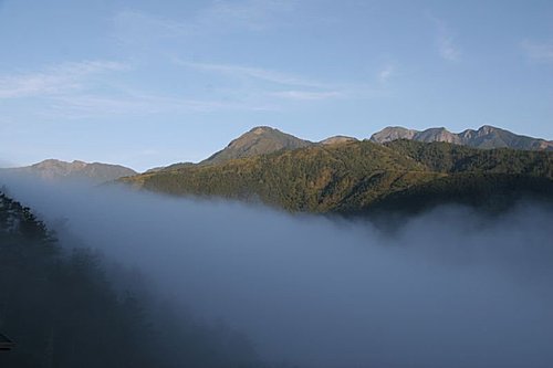 9 月 7 日一早 6:00 我醒來望向窗外,我眼睛雪亮,窗外的雲霧繚繞,我拿起單眼相機,抓起外套,就衝出去了。我站著,凝視著遠方的崇崇峻嶺,一份潛藏心中又不知名的渴望與執著,我終於回到家鄉的山林了。遠山近巒,依層顯現。莫非「此景只應天上有,人間難得幾回見?」我如此孜孜不倦,一次又一次的奔赴山林間,就是為了這片刻的感動。片刻的感動沉入遙遠的記憶,也沁入了生命中的軌跡。我終究還是屬於大自然的。
