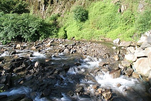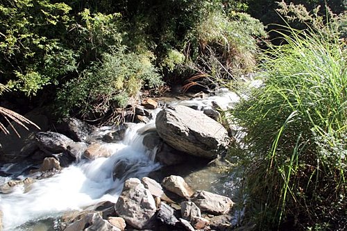 Narcissus 告訴我,在這裡季節裡,林道裡有許多野生的彌猴桃可以吃。事實上,它是一種野生的奇異果。林道真是美,陽光灑落在林間,照射在溪流裡,這幅美景,讓我感受到是如此的心曠神怡,我拍了不少照片,一直捨不得走。Narcissus 一直催我,不要停留太久。林道沿途楓樹、槭樹、華八仙、油點草、…還有許許多多不知名植物等等。我實在太久沒有認植物了,全都忘光光了。