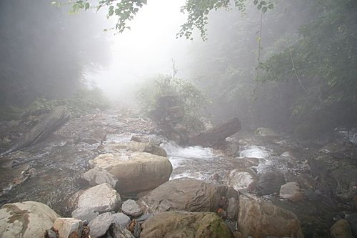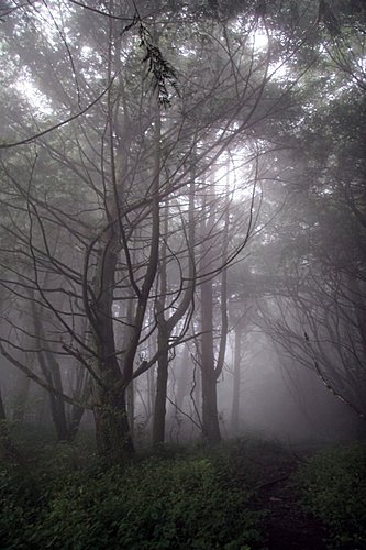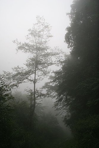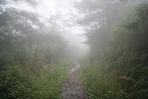 由於感覺天氣又起變化,起霧了,且開始下起雨來,且能見度也愈來愈差,林道也一片霧茫茫,有如人間仙境般。當下我真的不知自己到底身在何處?我才剛從德國回來,接著第二天又來到這裡?有種時空錯亂的感覺。