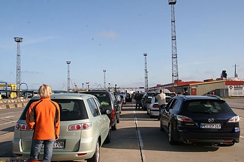 Kevin 已經預先租了一部車且於一星期前預訂了船票,今天提早下班,4:00 出發,先去柏林 Berlin 吃台灣人開的日本料理吃到飽,然後再往德國邊界的一個城市 Rostock住一宿,準備明天搭渡輪過海到丹麥國。在開車的路途中,雨勢非常的大,雨刷根本來不及刷這來勢兇兇的傾盆大雨,我們大家只好又消遣 007。「每次出門,有你在都會下雨」,「雖然每次出門都會下雨,但是常常到目的地或第二天,就晴空萬里了啦!」007 總是笑笑的回答,且一臉無辜狀。而事實上,007 是一位性情中人的大帥哥,長得有點像台灣的原住民。事實上,他並沒有原住民的血統,且他彈了一手好吉他。他的五官最好看的是那一雙烱烱有神的眼睛和渾厚的唇形,也許是常常把人當成動物觀察習慣使然吧!掃描一下,大概就知道多少了。這就是我爺爺常說的︰「相由心生,騙不了人的啦!」。他常常自謿「拿出台灣男子氣概的精神」,哈!是啥意思呢?就是開車開錯了,馬上Return。旅途中有他,總是有不少的笑聲。