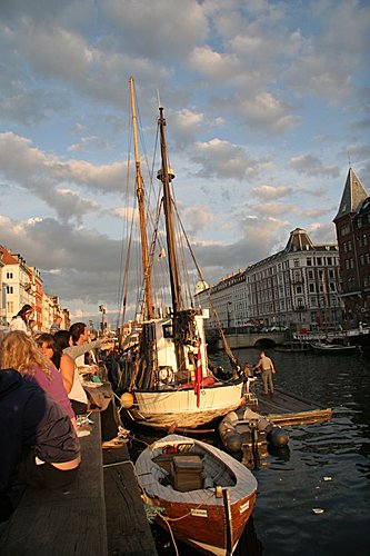 肚子有點餓了,是該吃飯了。於是我們車子開往新港方向去,途中看到了腓特列教會、皇家劇場..等。新港是最能品味真正哥本哈根 Copenhagen的風情,也是觀光客必定造訪的景點之一。運河延岸大都是餐廳及咖啡店。且此地也是世界各地水手聚集之所。由於我好奇加上愛拍照愛觀察,所以一路拍照,走在 KG、Kevin 和 007 前面。最後坐在運河畔邊拍夕陽且等他們。一看到他們,找家露天的餐廳坐下來,就覺得三個男人的氣氛怪怪的不對。我私下詢問了 007,到底出了什麼問題。007 告訴我,因為 Kevin 要介紹吃有名的丹麥食物,只是價錢太貴,大家只想經濟一點。原來是為這檔事?旅行的心情是自己要去控制的,也是要做自己心情的主人。許多事不是一定要如何?身為「人」這種動物,許多人就是看不透這點。有時候你覺香蕉好吃,但有人卻愛吃蘋果,因為不同,人生才顯得有趣可愛多了,不是嗎?「別生氣,別生氣;氣死,沒人替,多划不來。」
