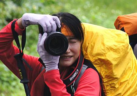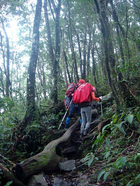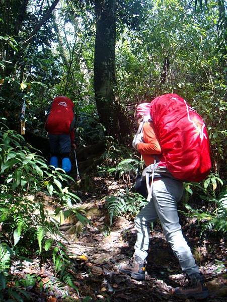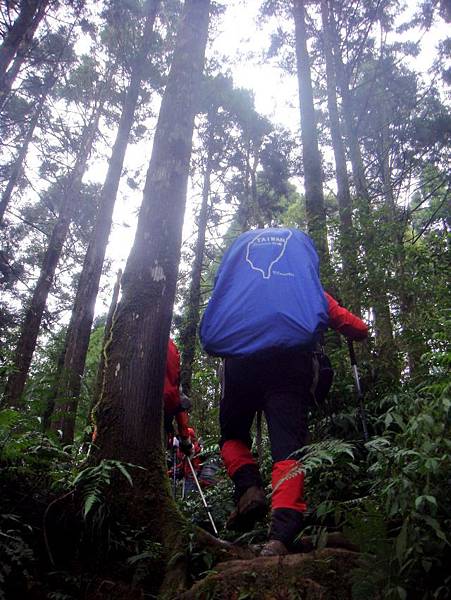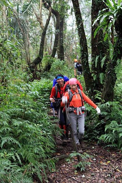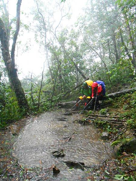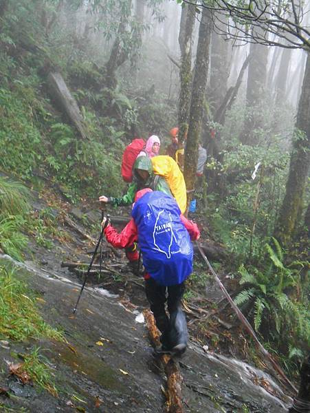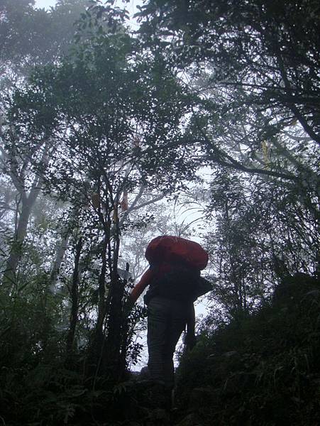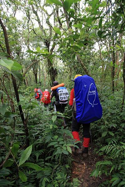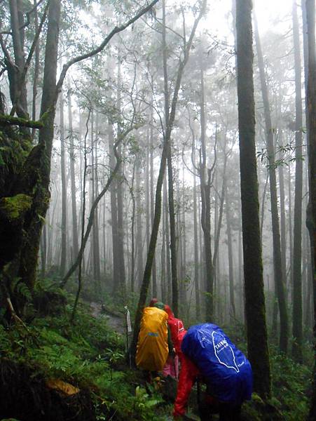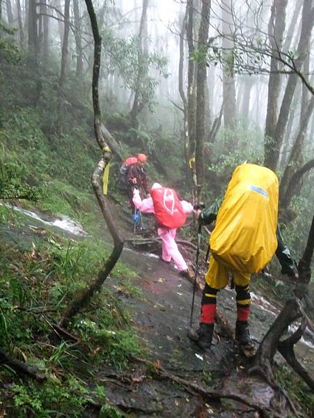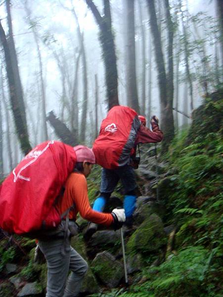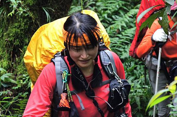 我告訴好伙伴 Alex,我必須先走,因為我的呼吸會亂,留下健腳的男伙伴們,陪著 Sinya 慢慢走。Sinya 太久沒有爬大山,且又是重裝在雨中行進,真的辛苦她了。