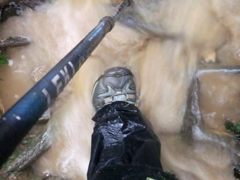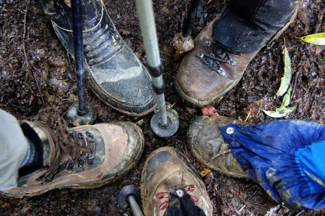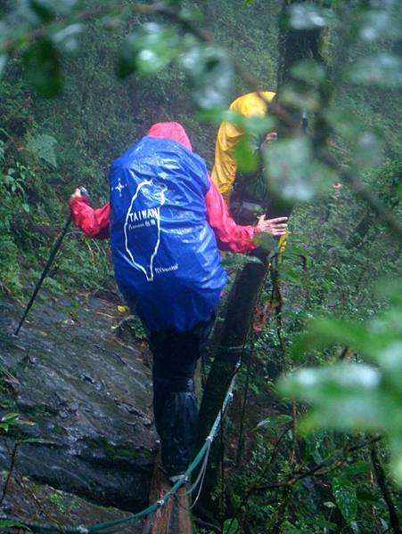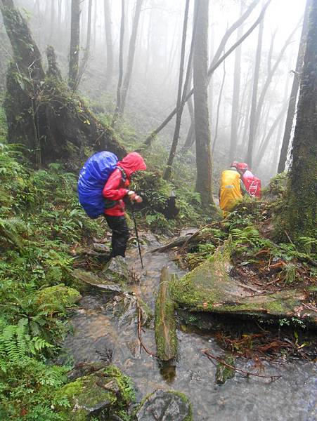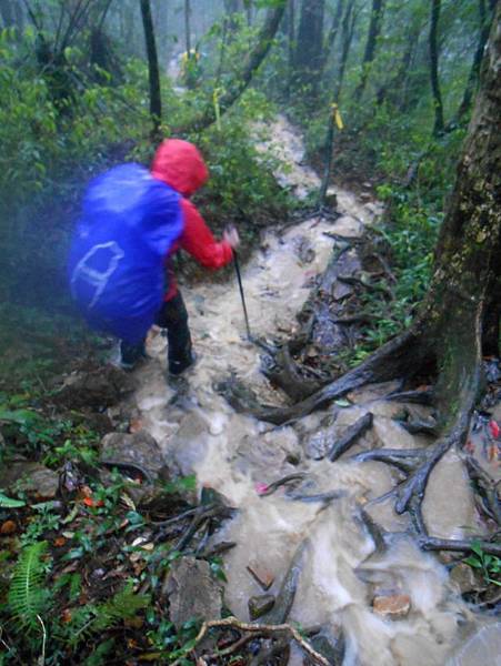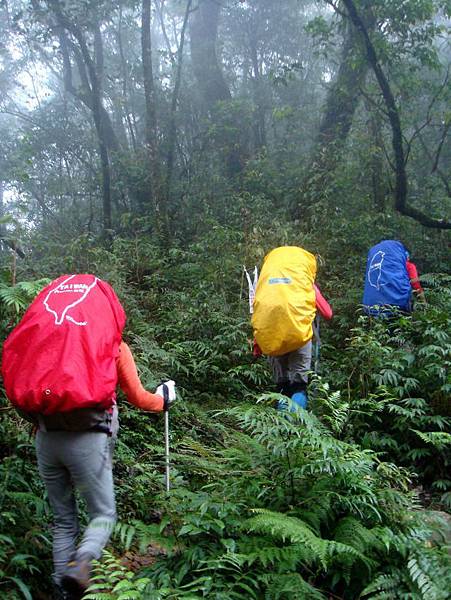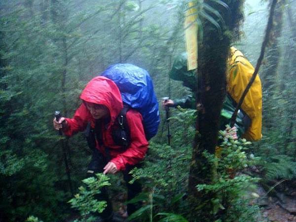 大伙兒努力在大雨的森林裡趕路著,很久沒有感受這種大雨打在身上的感覺。肩上沉重的背包,愈來愈重,步伐也愈來愈慢。
