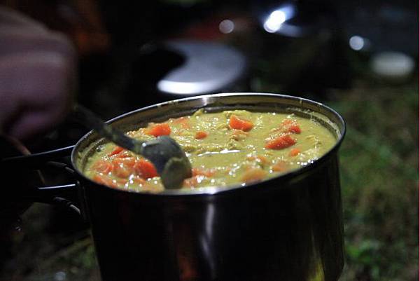 好弟兄與 Sinya 好姐妹二人在迷濛煙雨的黑夜天帳下,吟詩作對。我跟另二位的伙伴,各自在自己的帳篷裡,靜靜地聆聽人類雌雄兩性的浪漫雨中對話。「小毛,這麼好的時光,出來聊天啦!不要睡覺啦,你們怎睡得著。」我心想:「頭殼壞去,冷冷冷,外頭雨大,風又大,我還是睡覺去,見我的周公吧。」