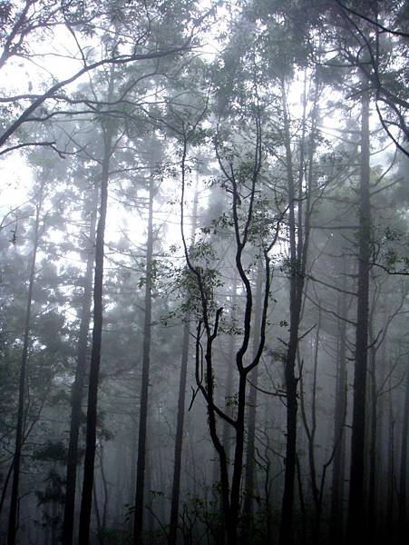 第二天清晨,雨仍一直下著,霧氣山嵐,雨絲如銀線般在森林裡穿梭著。雨,愈下愈大,宣洩不已,伙伴們全身都濕了,